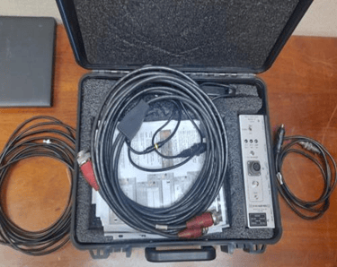 Using a combination of hardware and software coordinated from a laptop computer.